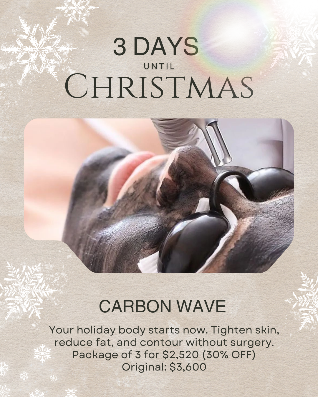 Sculpt and refine with Day 3 — CARBON WAVE. This advanced treatment tightens skin, reduces stubborn fat, and enhances body contours—all without surgery or downtime.